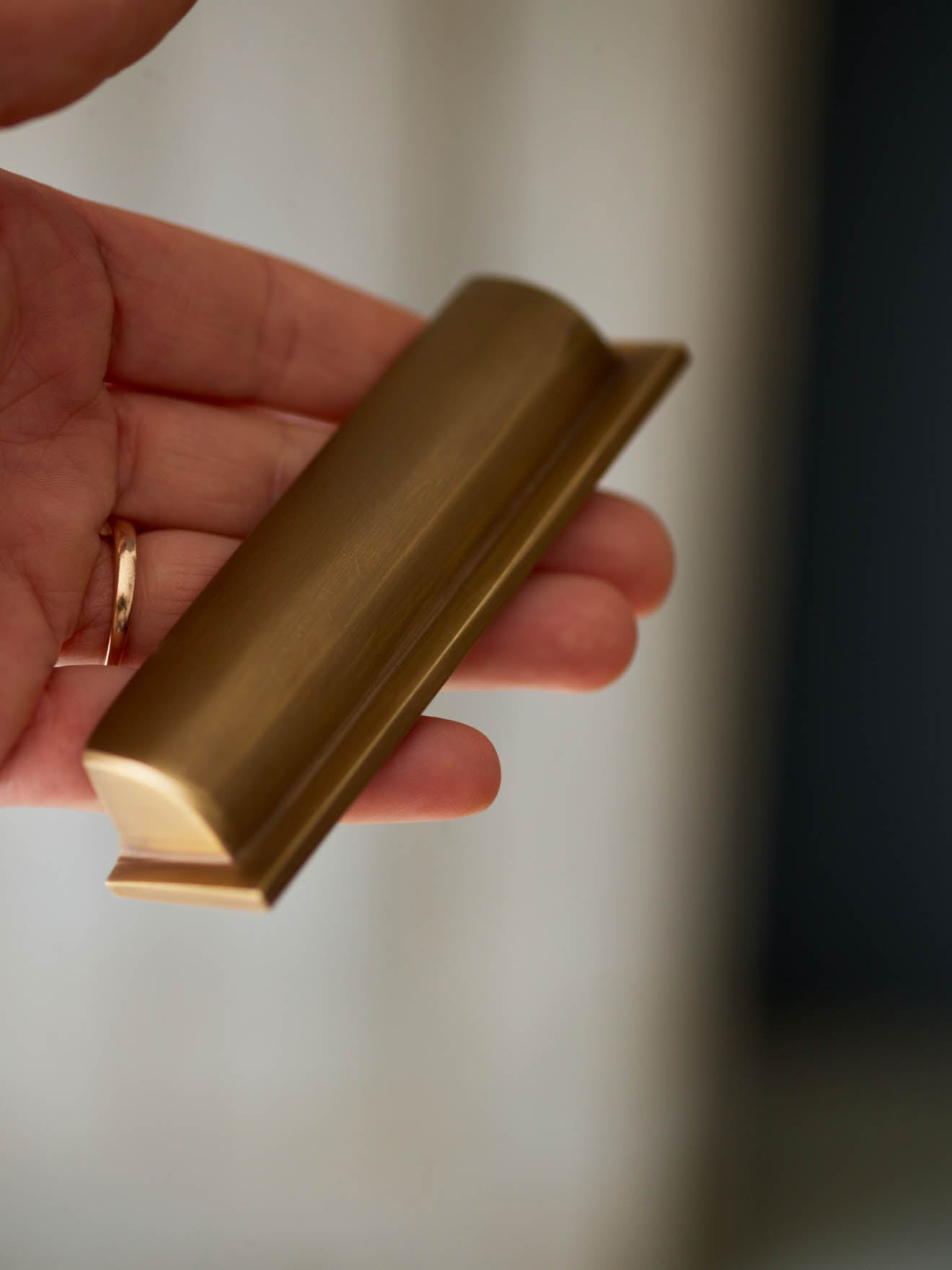 - A natural finish designed to change with use, lightening in areas to reveal the solid brass
